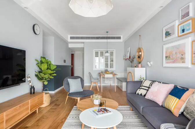 本案房主都是教师,对未来新生活充满着各种想象。要求简约为主,喜欢日式及无印良品的家具 通过沟通最终敲定北欧风格。电视背景